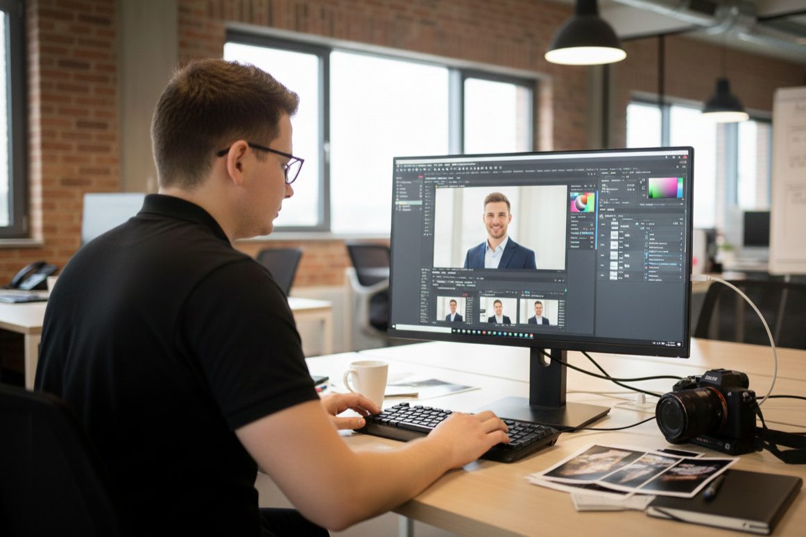 After the shoot we edit, colour-correct and deliver a tidy gallery. Headshots get light retouching.